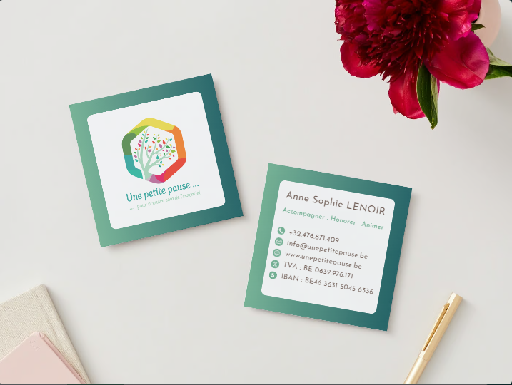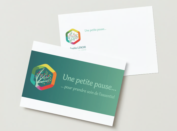 Ce logo communique efficacement une idée de bien-être, de ressourcement et de connexion avec la nature. Il reflète parfaitement des activités comme le yoga, les ateliers en nature ou les massages. La combinaison des formes douces, des couleurs variées et du message invite à une pause régénératrice et essentielle.